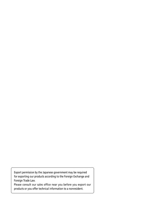 ExportpermissionbytheJapanesegovernmentmayberequiredforexportingourproductsaccordingtotheForeignExchangeandForeignTradeLaw.Pleaseconsultoursalesofficenearyoubeforeyouexportourproductsoryouoffertechnicalinformationtoanonresident.